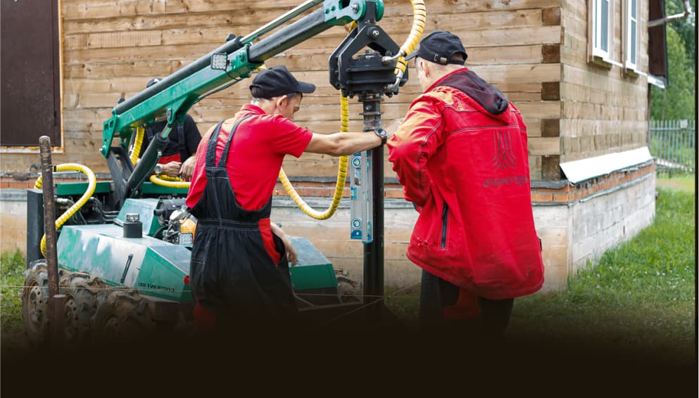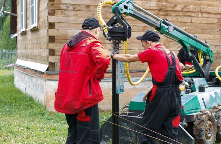2. Установка винтовых свай: специальное оборудование используется для вкручивания свай в грунт до достижения требуемой глубины.